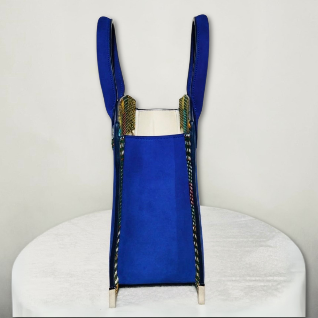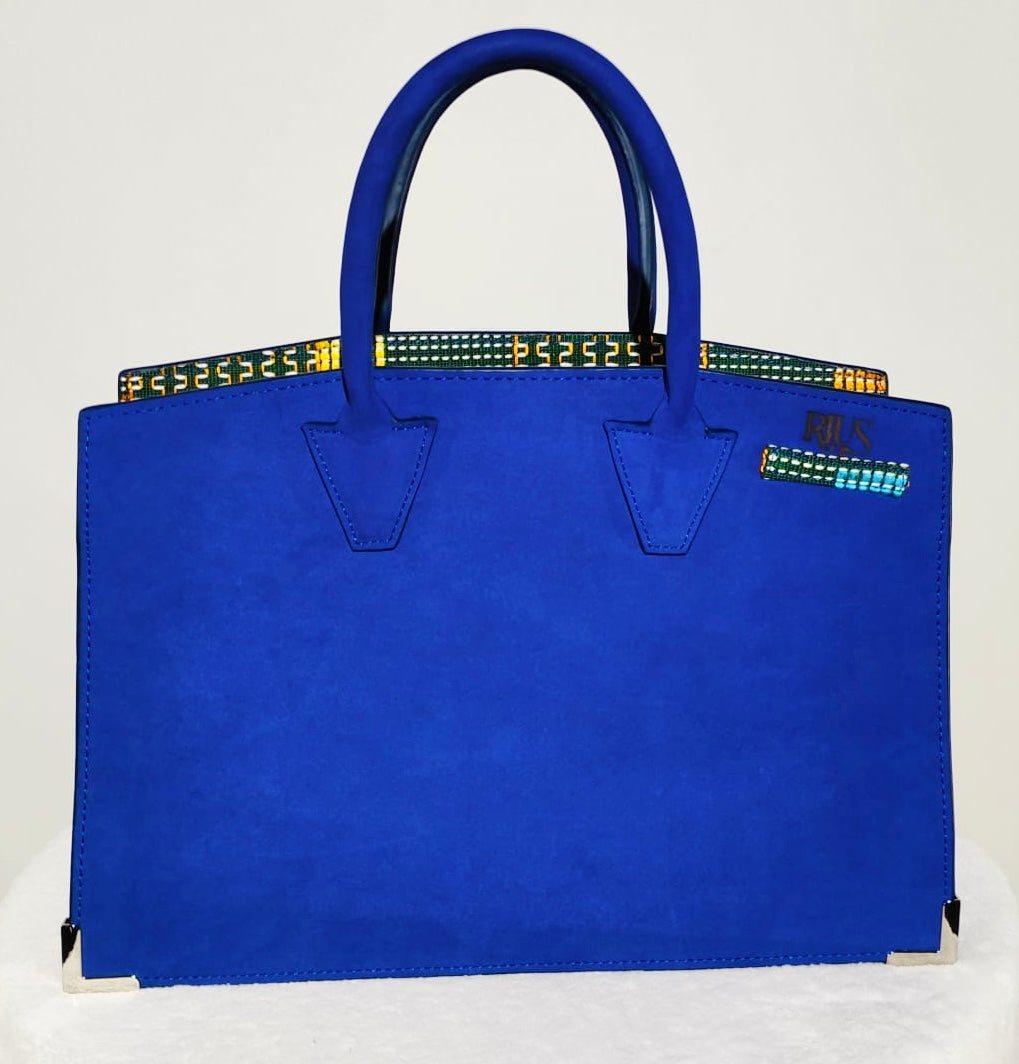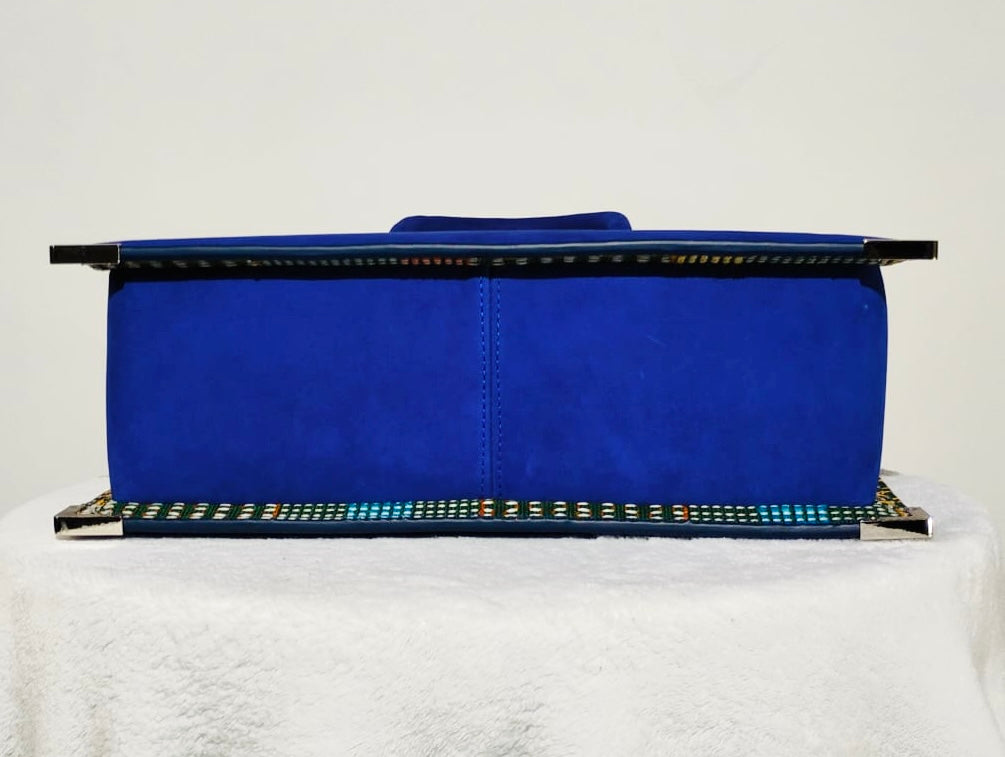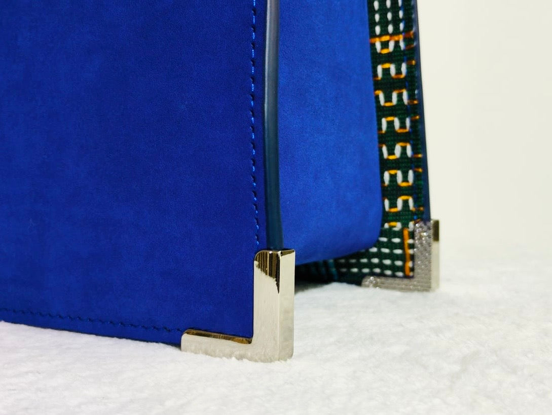 Italian Nubuck Cowhide in Blue with silver zinc alloy hardware