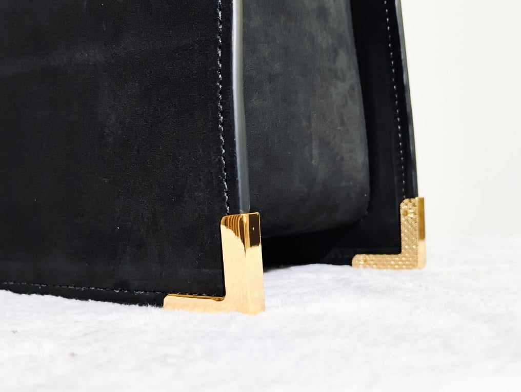 Italian Nubuck Cowhide in Noir with gold zinc alloy hardware