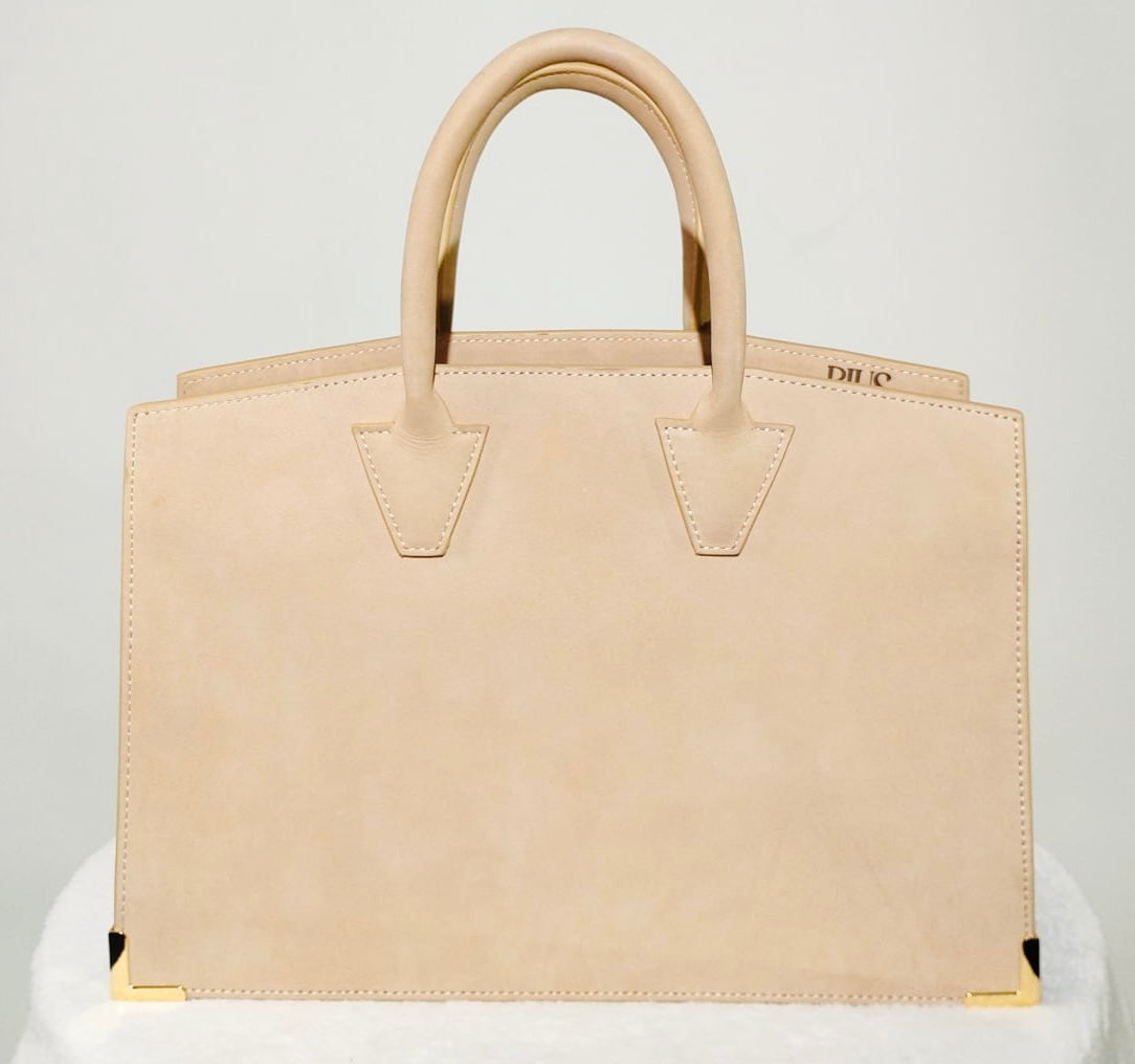 Italian Nubuck Cowhide in Sand with gold zinc alloy hardware