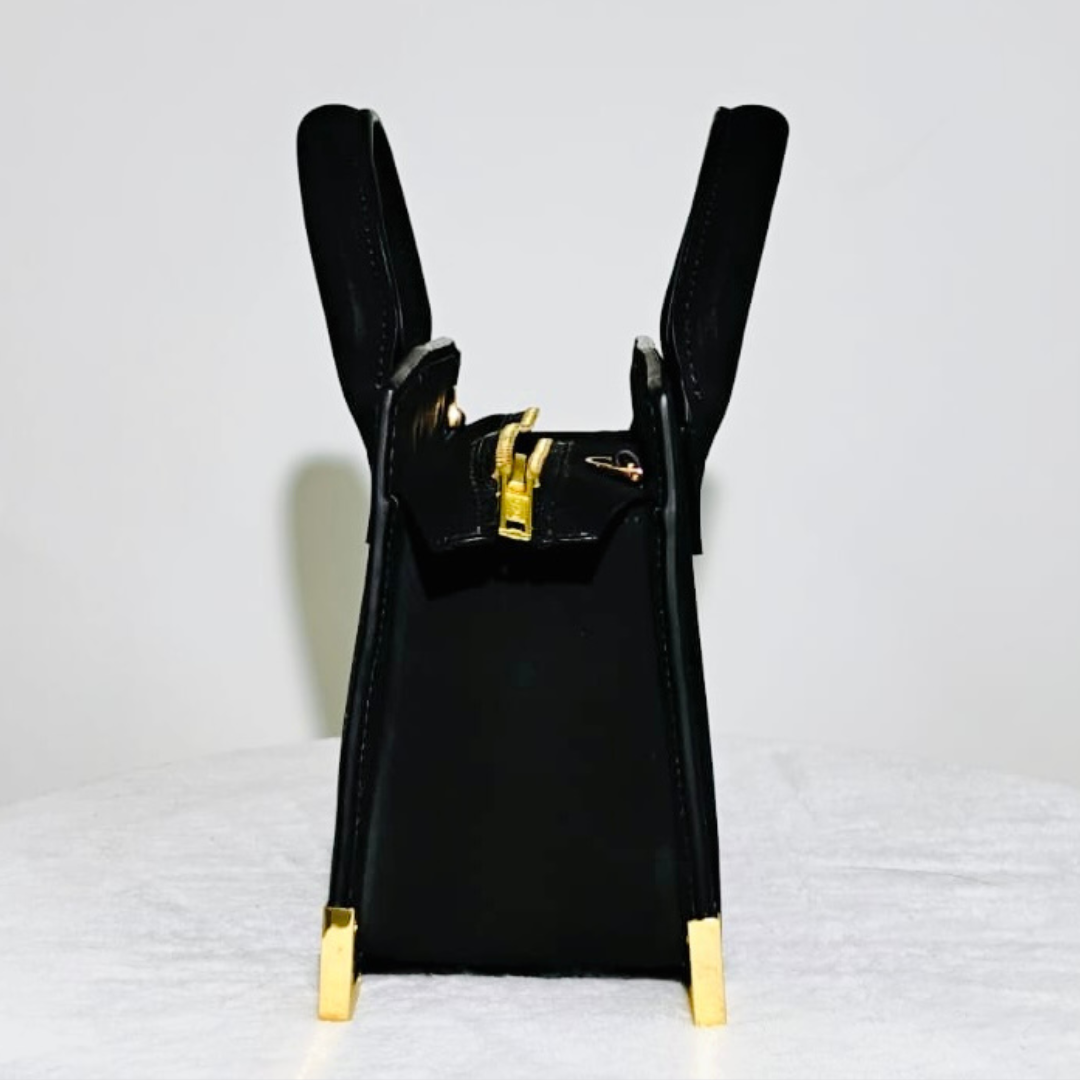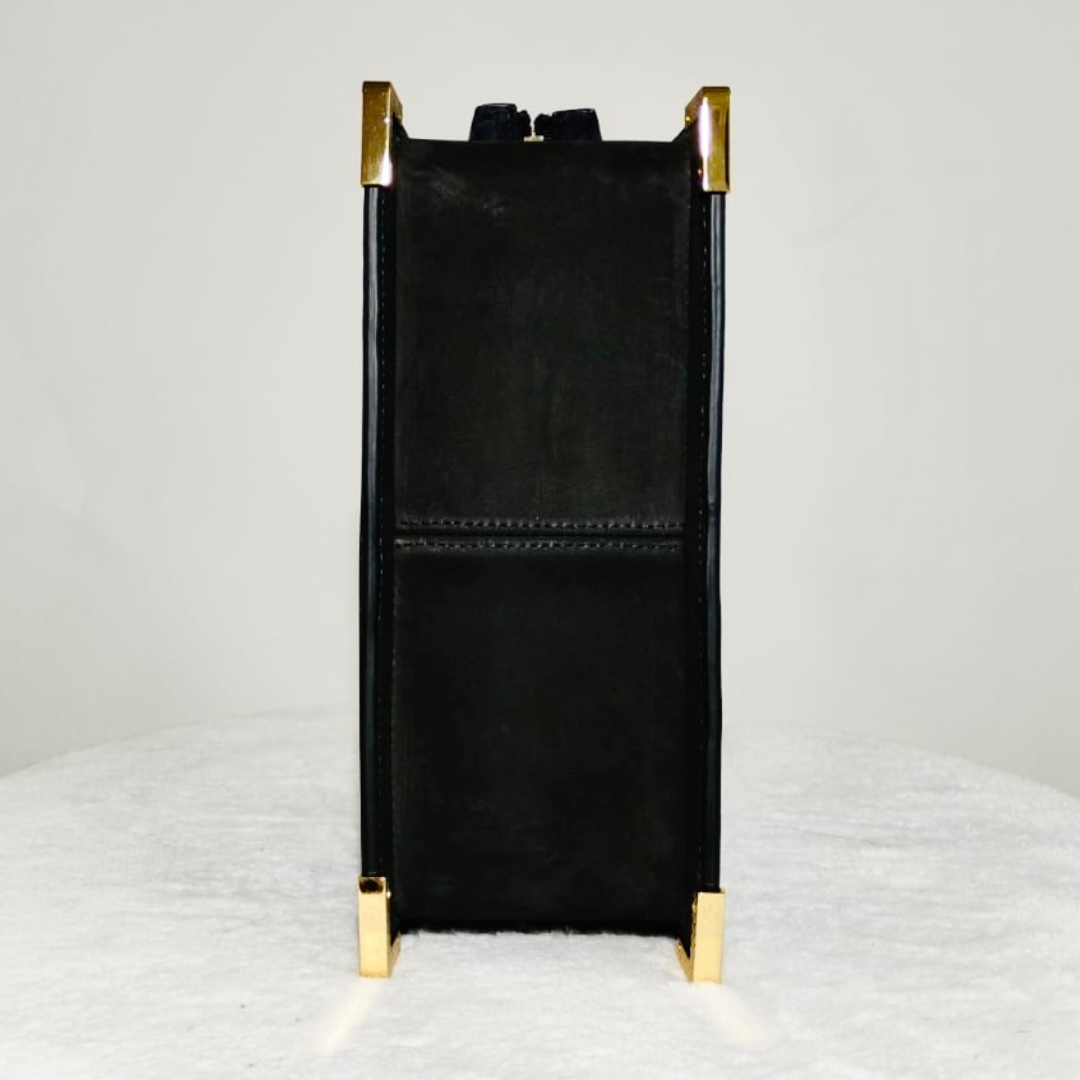 Italian Nubuck Cowhide in Noir with gold zinc alloy hardware