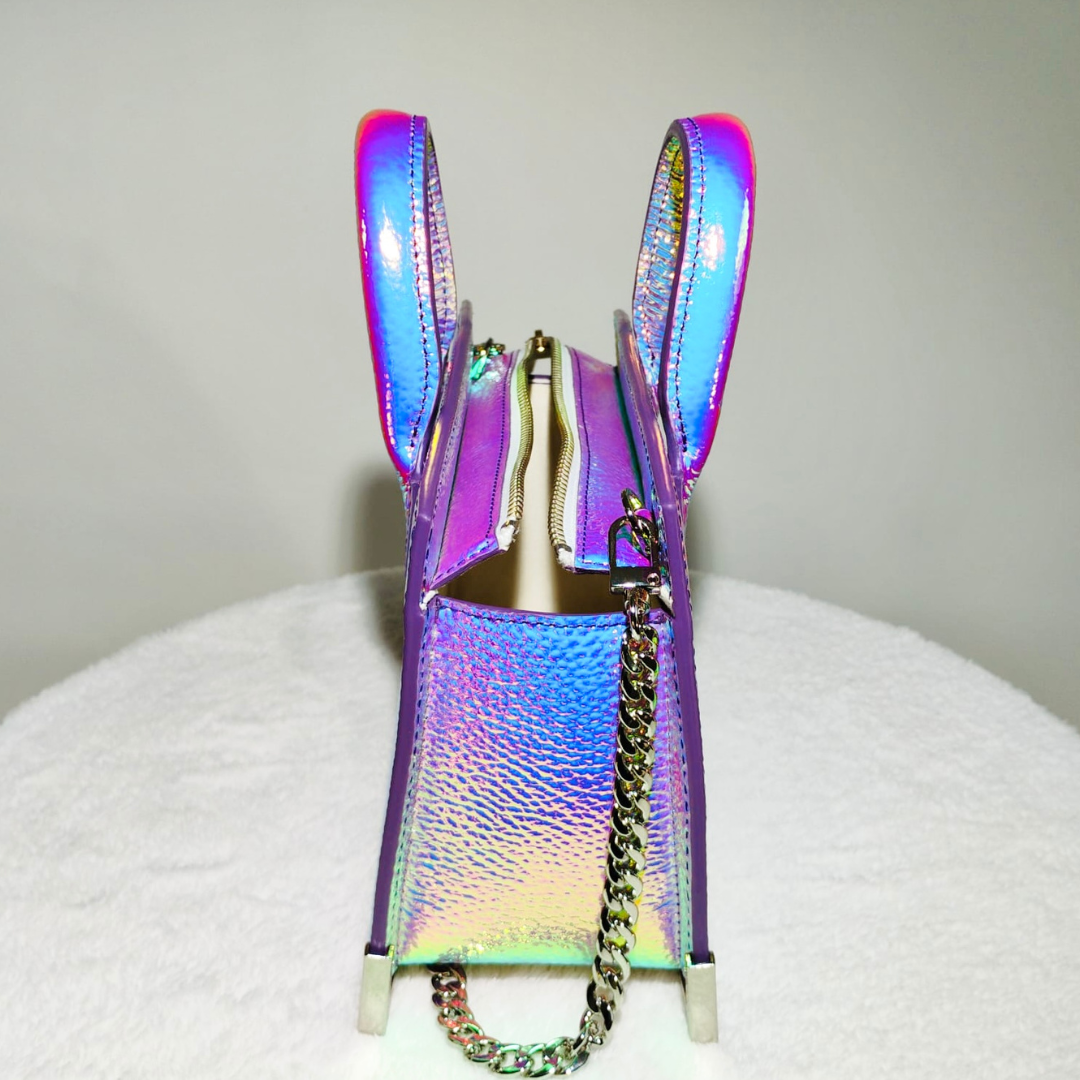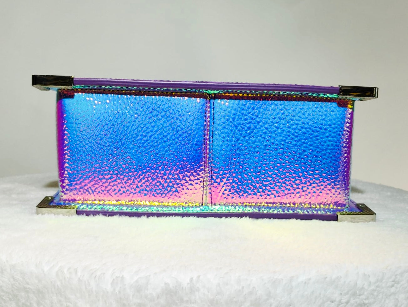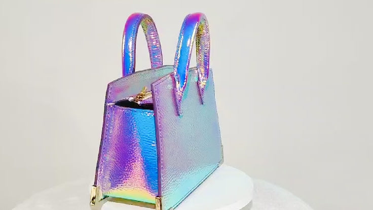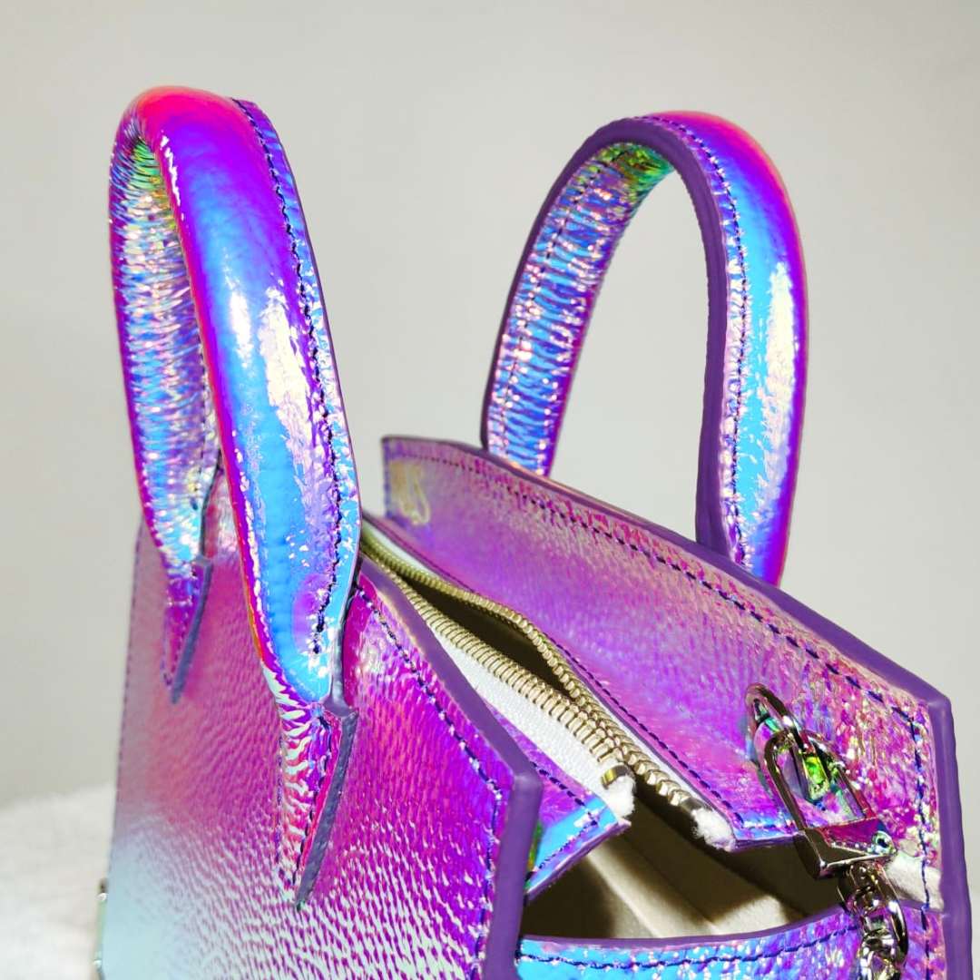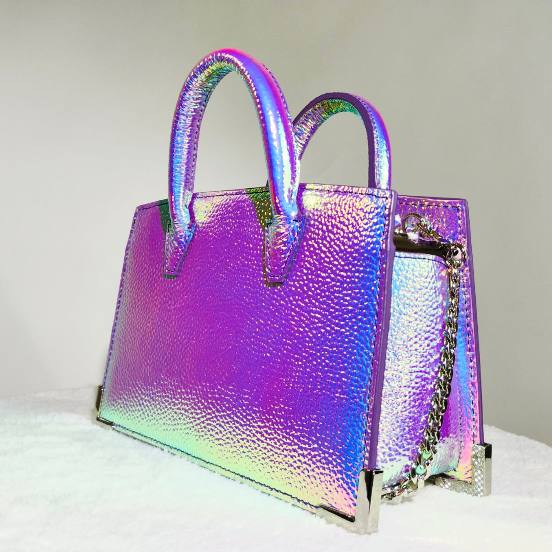 Iridescent Italian Pebble Grain in Rainbow with silver zinc alloy hardware